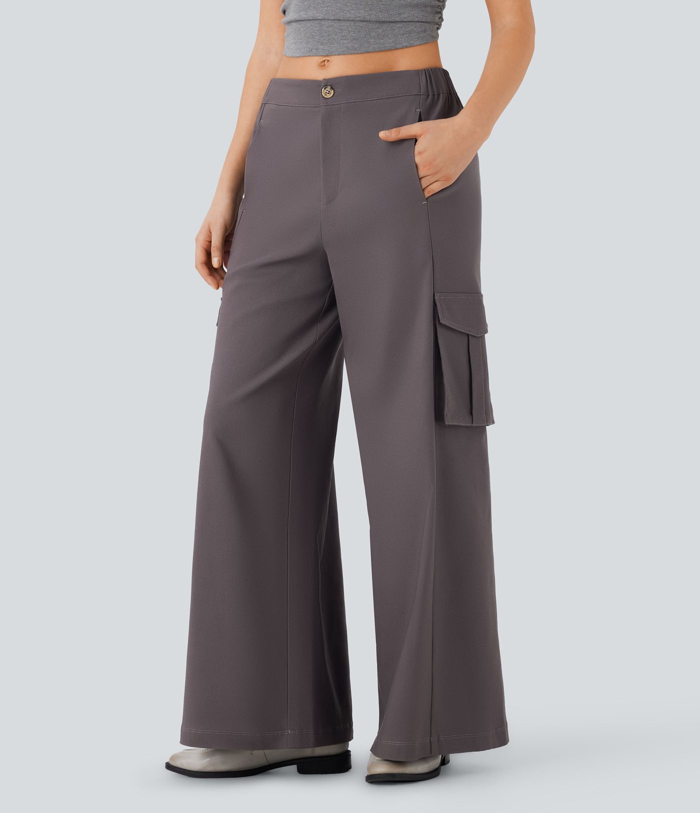 Low Rise Wide Leg Casual Cargo Trousers with Multiple Pockets