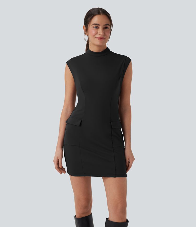 DayStretch Mock Neck Sleeveless Bodycon Mini Work Dress with Pockets