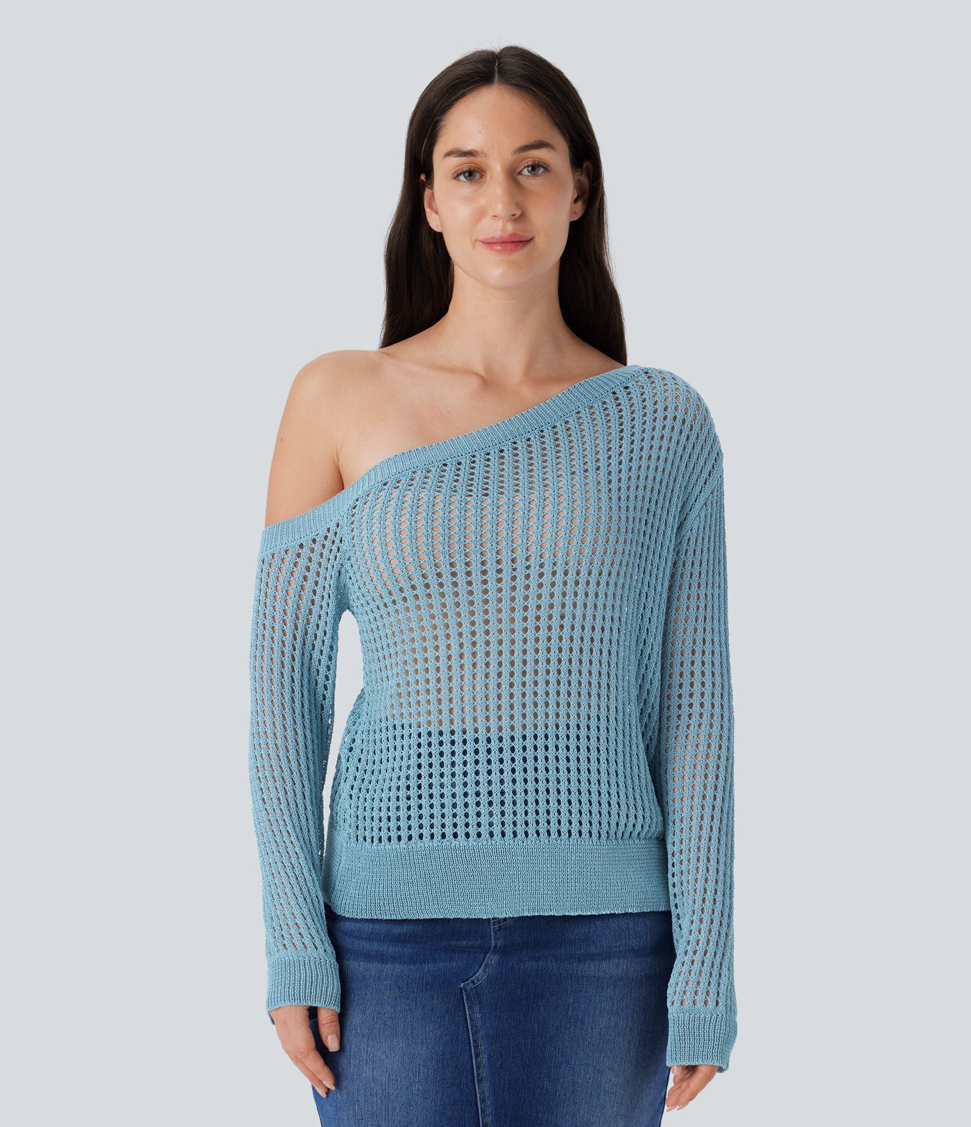 One Shoulder Long Sleeve Cut Out Casual Linen-Feel Jumper