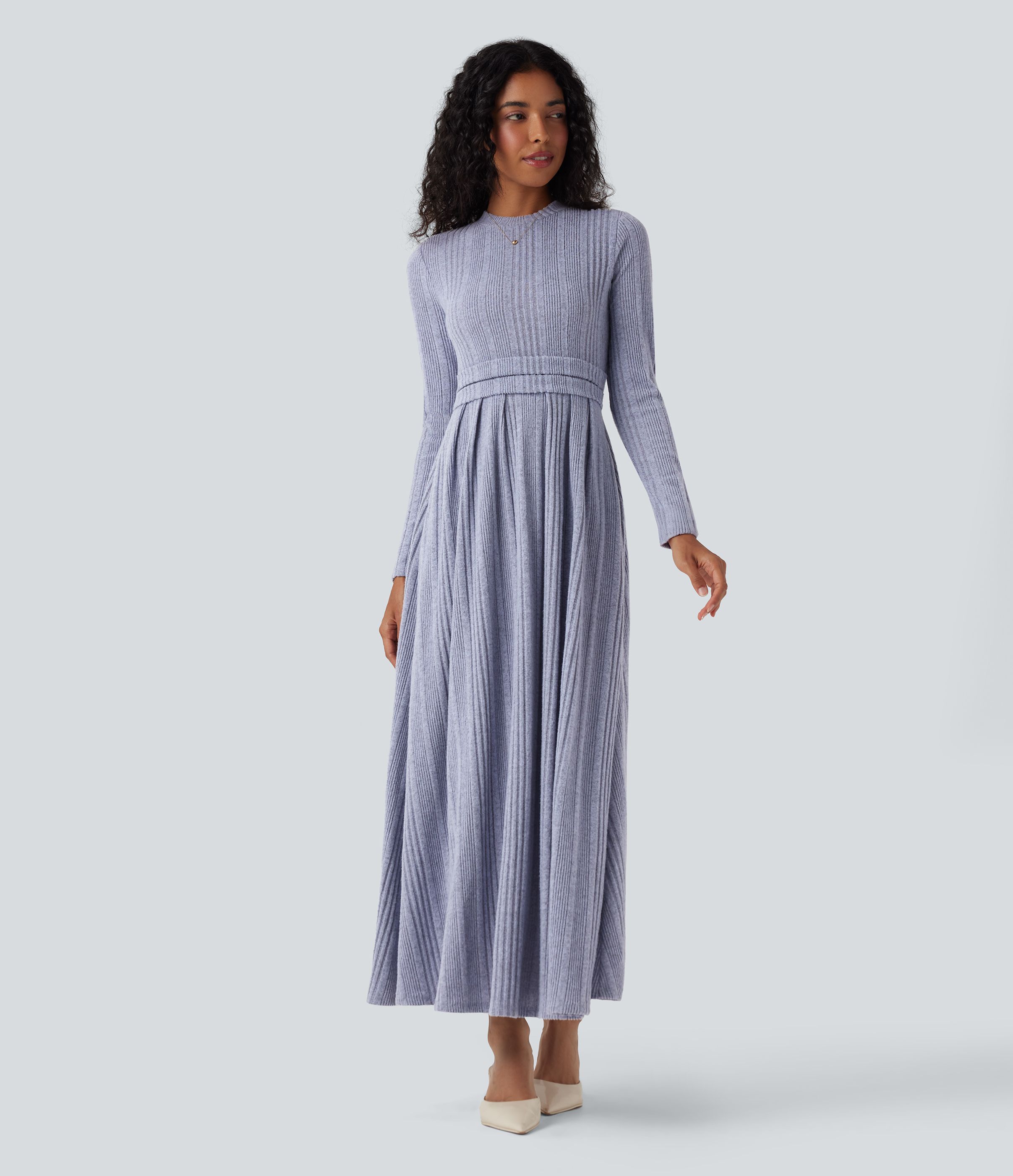 Round Neck Long Sleeve Flare Maxi Casual Dress