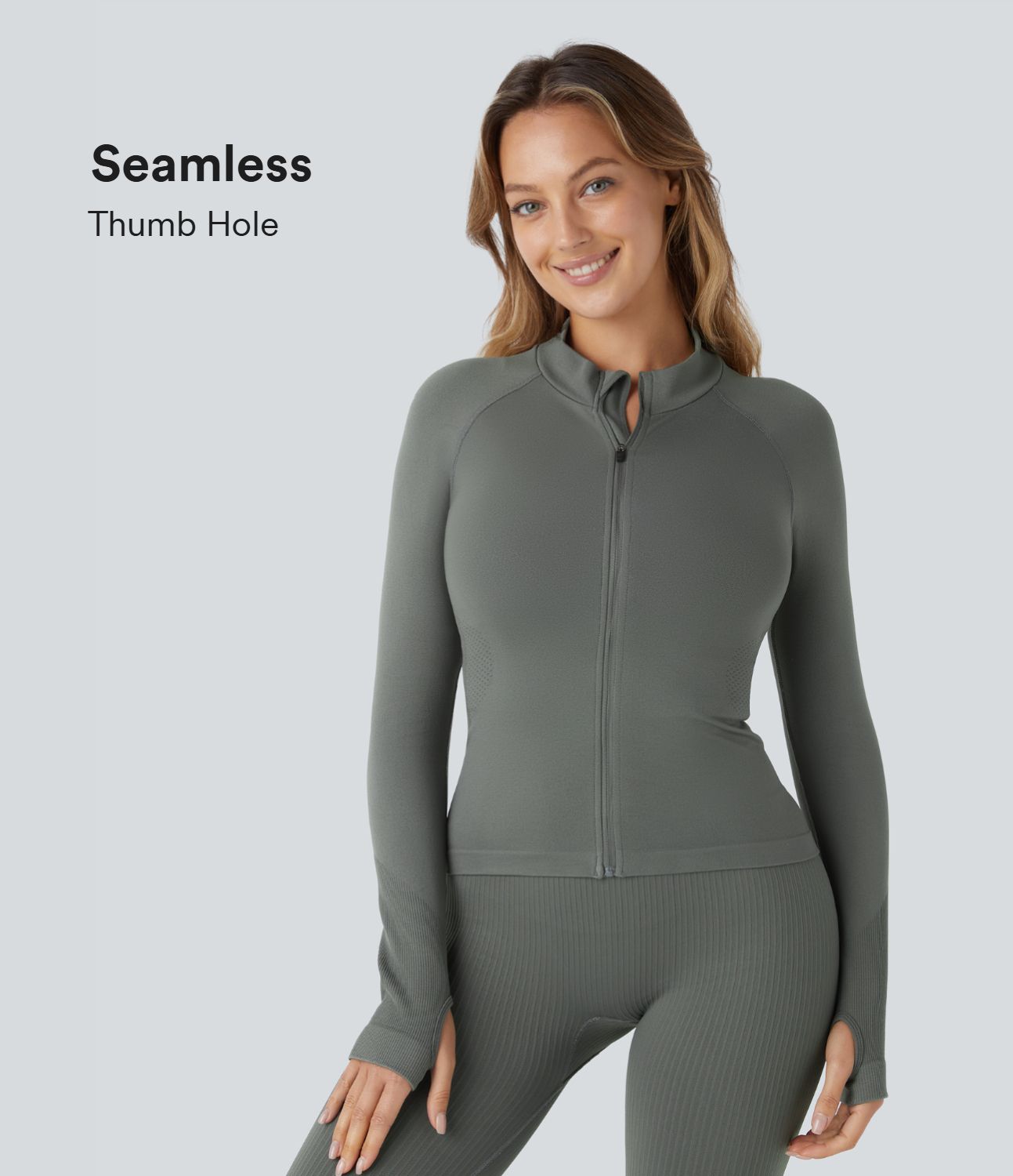 OneForm Seamless Flow Stand Collar Raglan Sleeve Thumb Hole Zipper Skinny Yoga Jacket