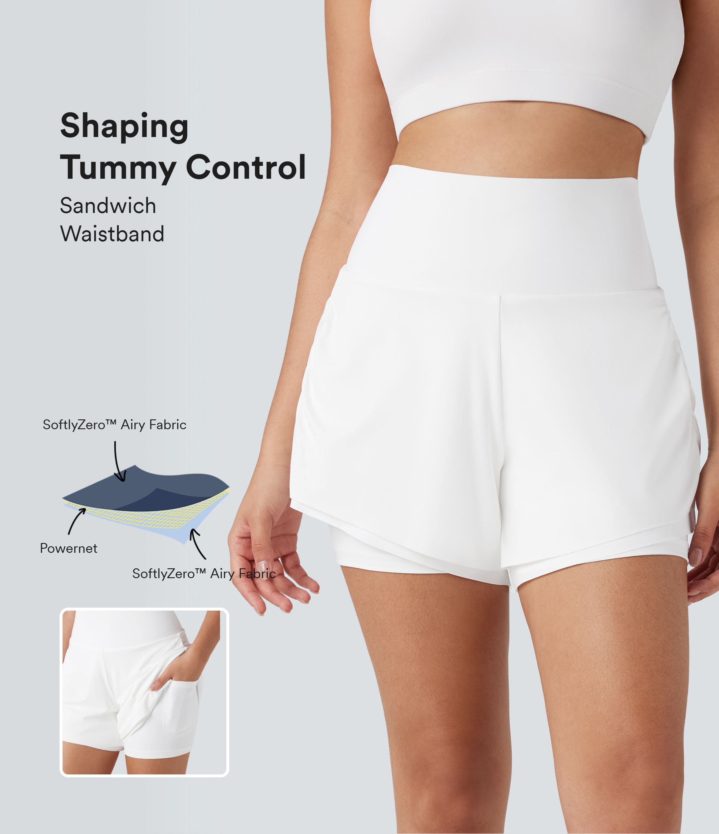 SoftlyZero™ Airy High Waisted Tummy Control 2-in-1 Cool Touch Yoga Shorts 5'' with Pockets