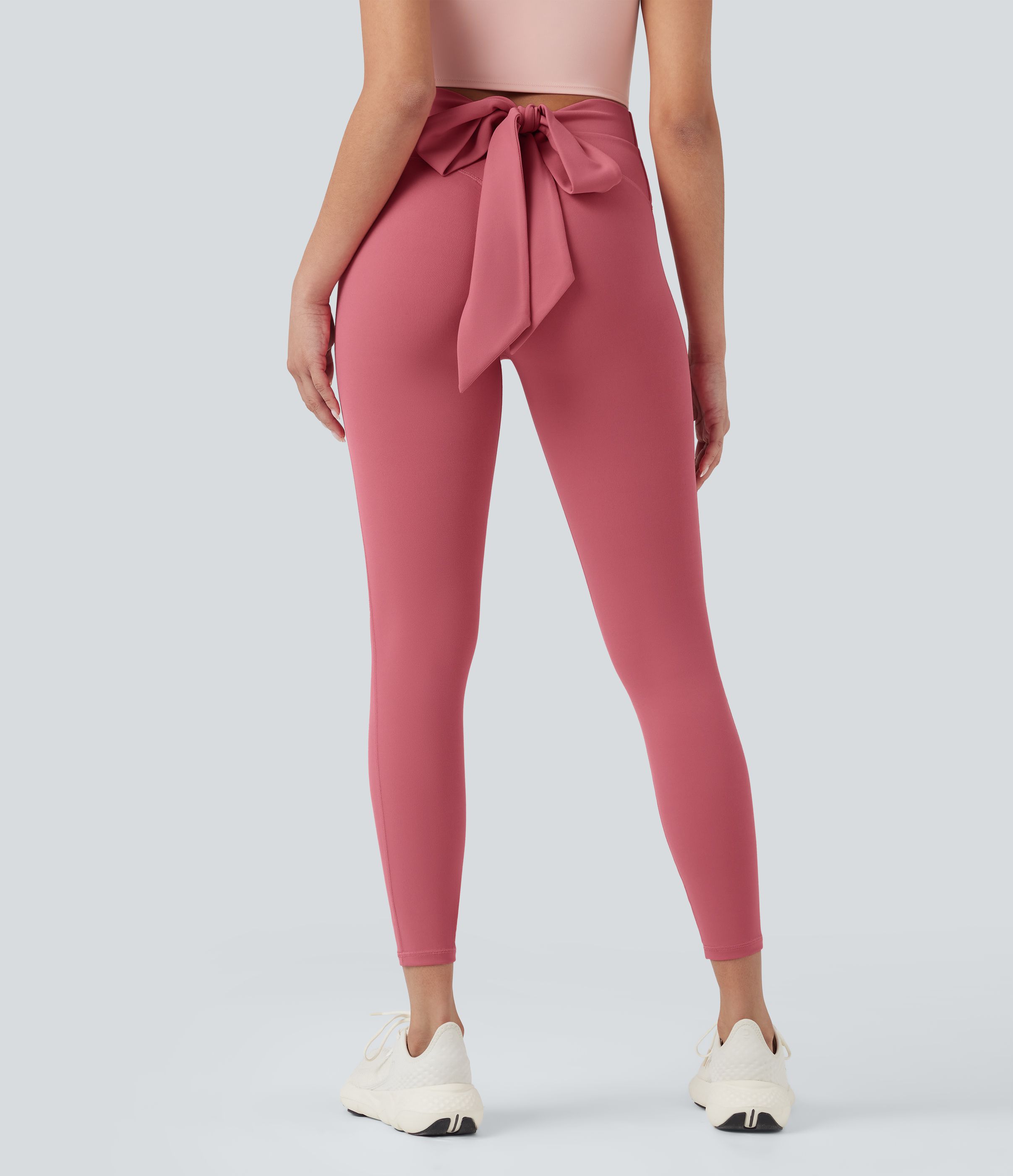 SoftlyZero™ High Waisted Tie Back Ruched 7/8 Yoga Leggings-UPF50+