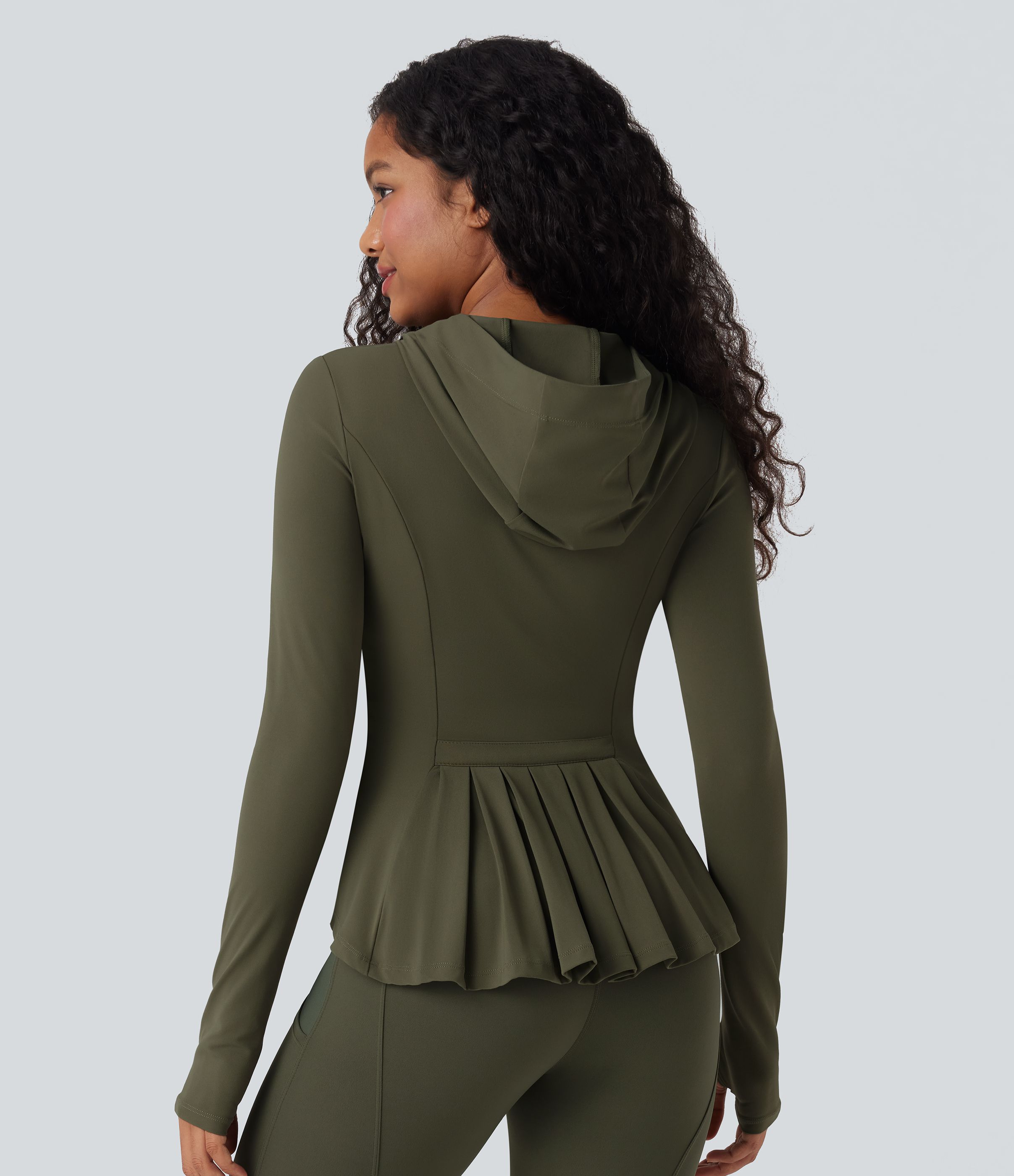 SoftlyZero™ Hooded Long Sleeve Thumb Hole Pleated Jacket with Pockets-UPF50+