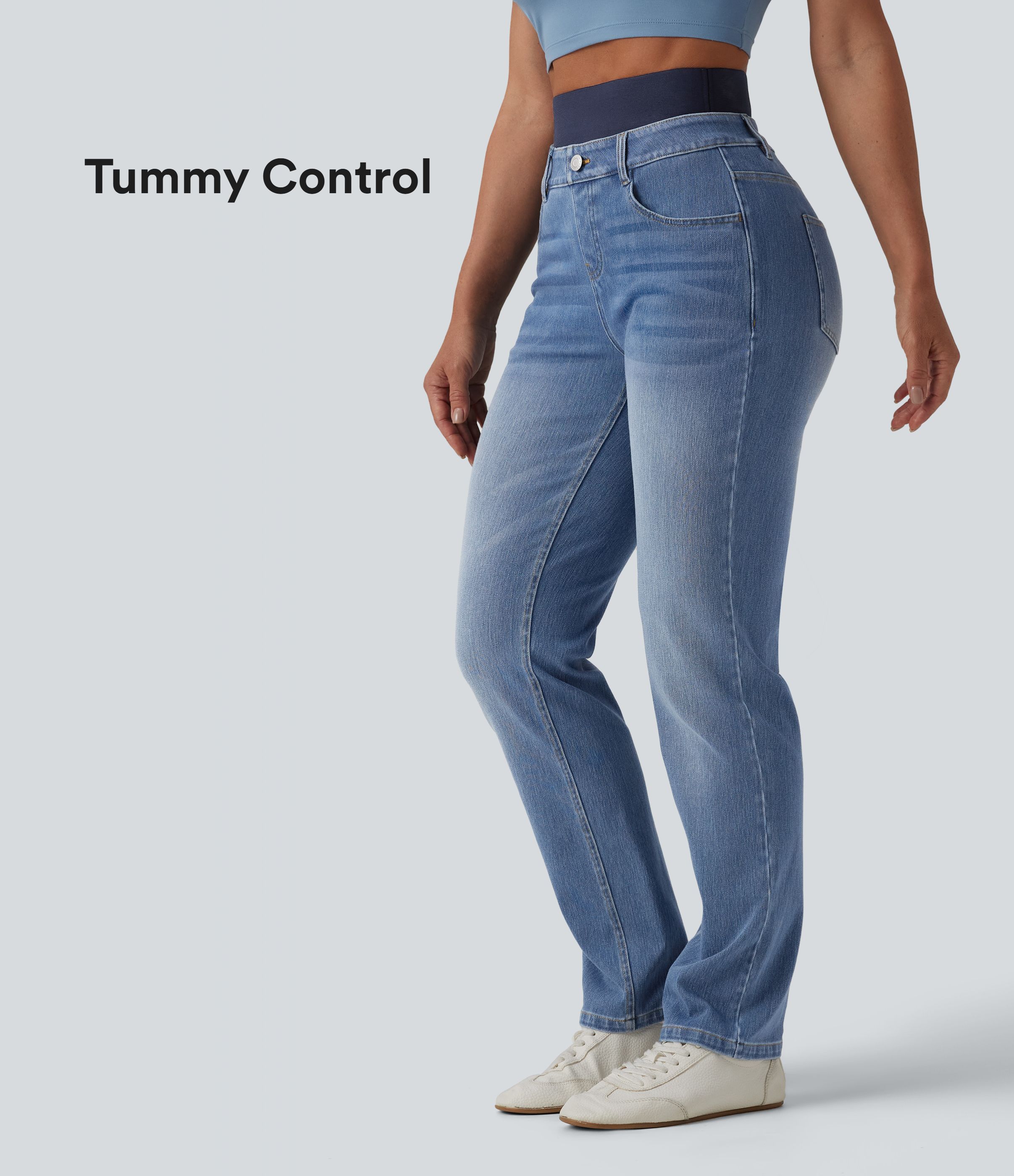 Halara Flex™ Double Waistband High Waisted Tummy Control Slim Casual Jeans with pockets