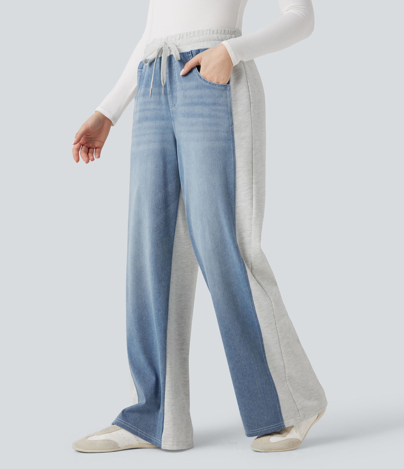 Halara Flex™ High-waisted Drawstring Color Block Casual Wide-leg Jogger Jeans with Pockets