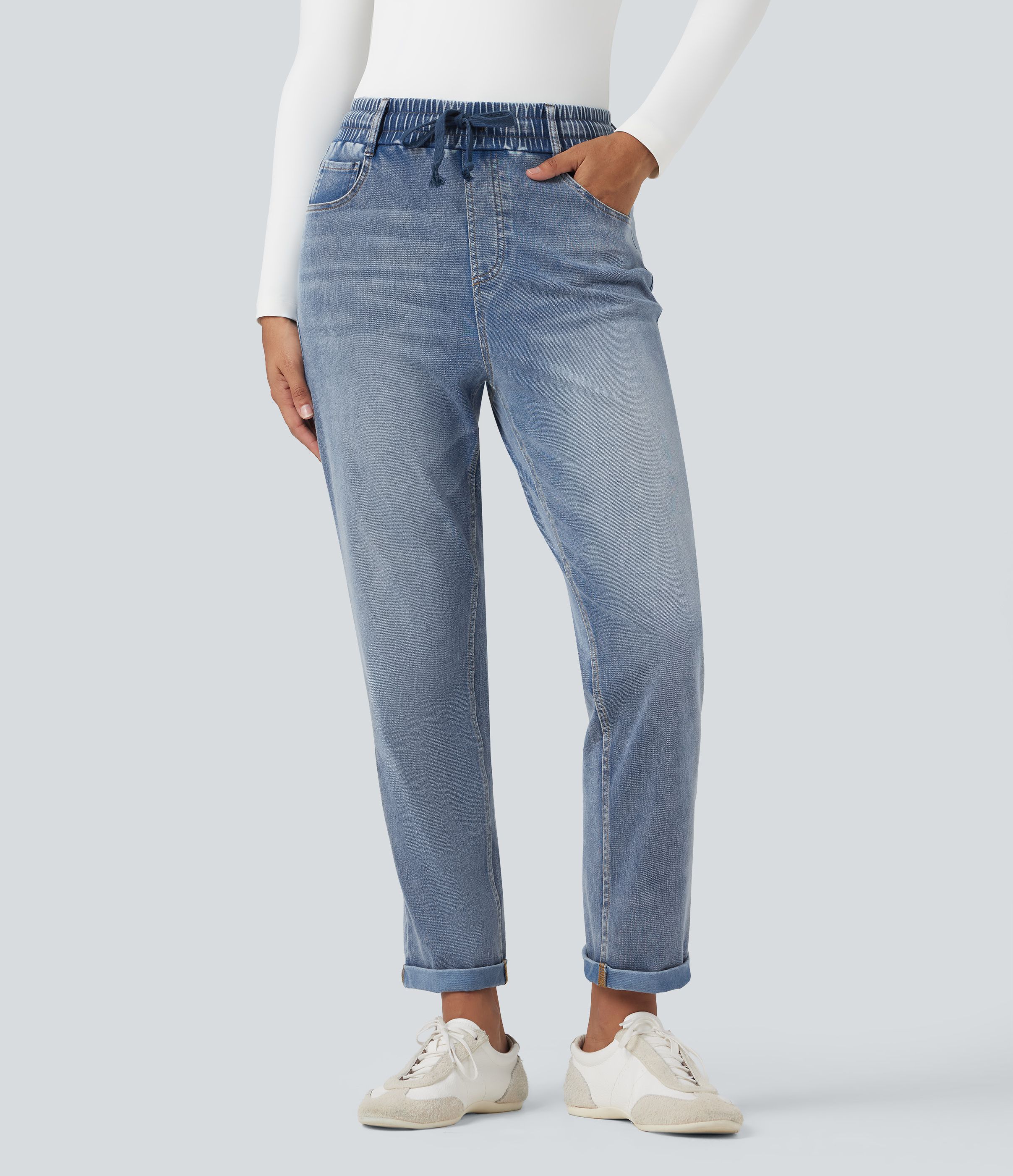 Halara Flex™ High Waisted Drawstring Rolled Hem Casual Slim Jeans with Pockets