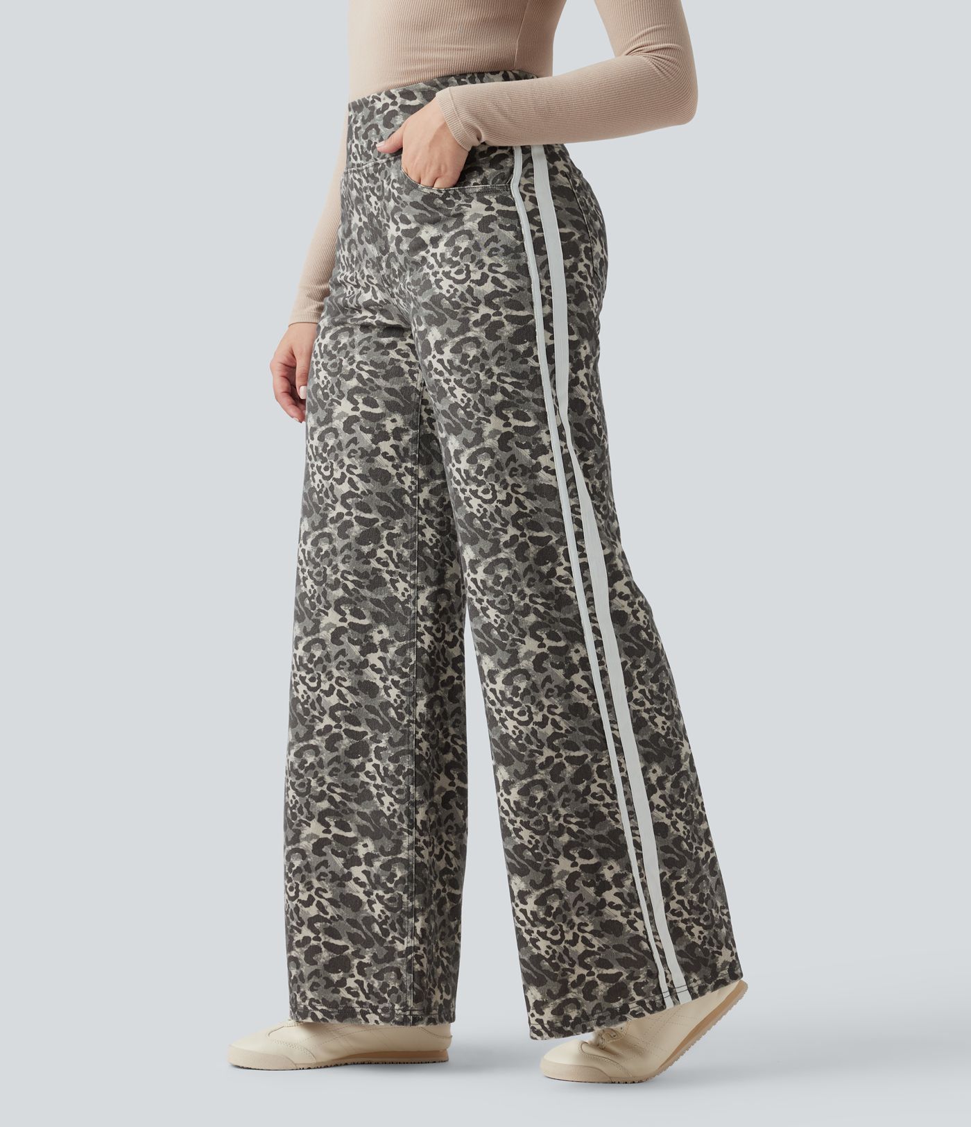 Halara Flex™ High Waisted Wide Leg Stripes Leopard Print Casual Jeans with Pockets