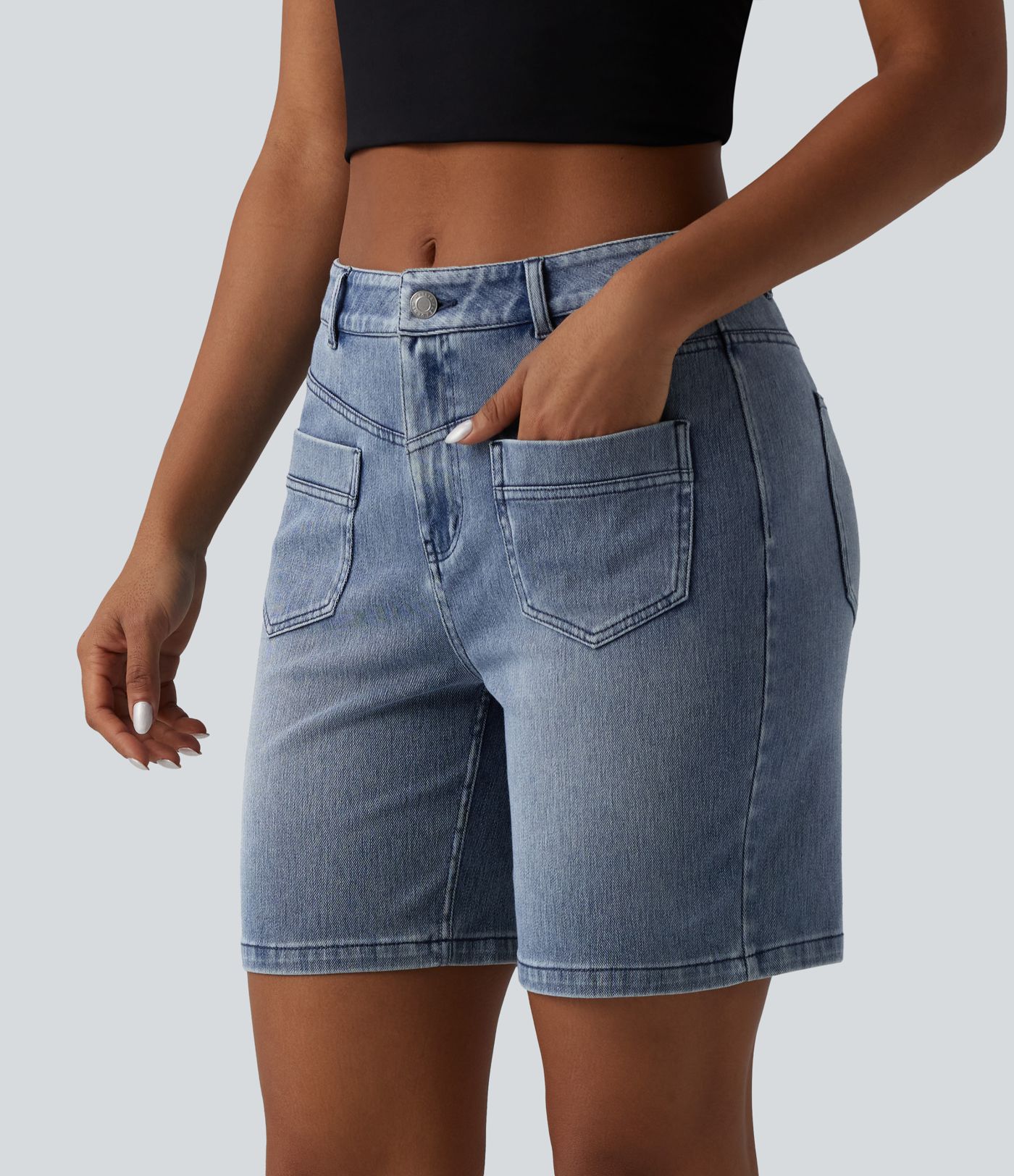 Halara Flex™ Mid Rise Denim Casual Shorts 7'' with Pockets