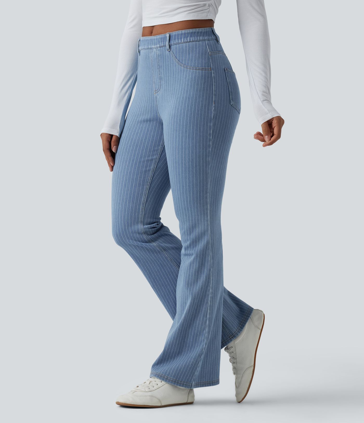 Halara Flex™ Mid Rise Stripe Flare Casual Jeans with Pockets