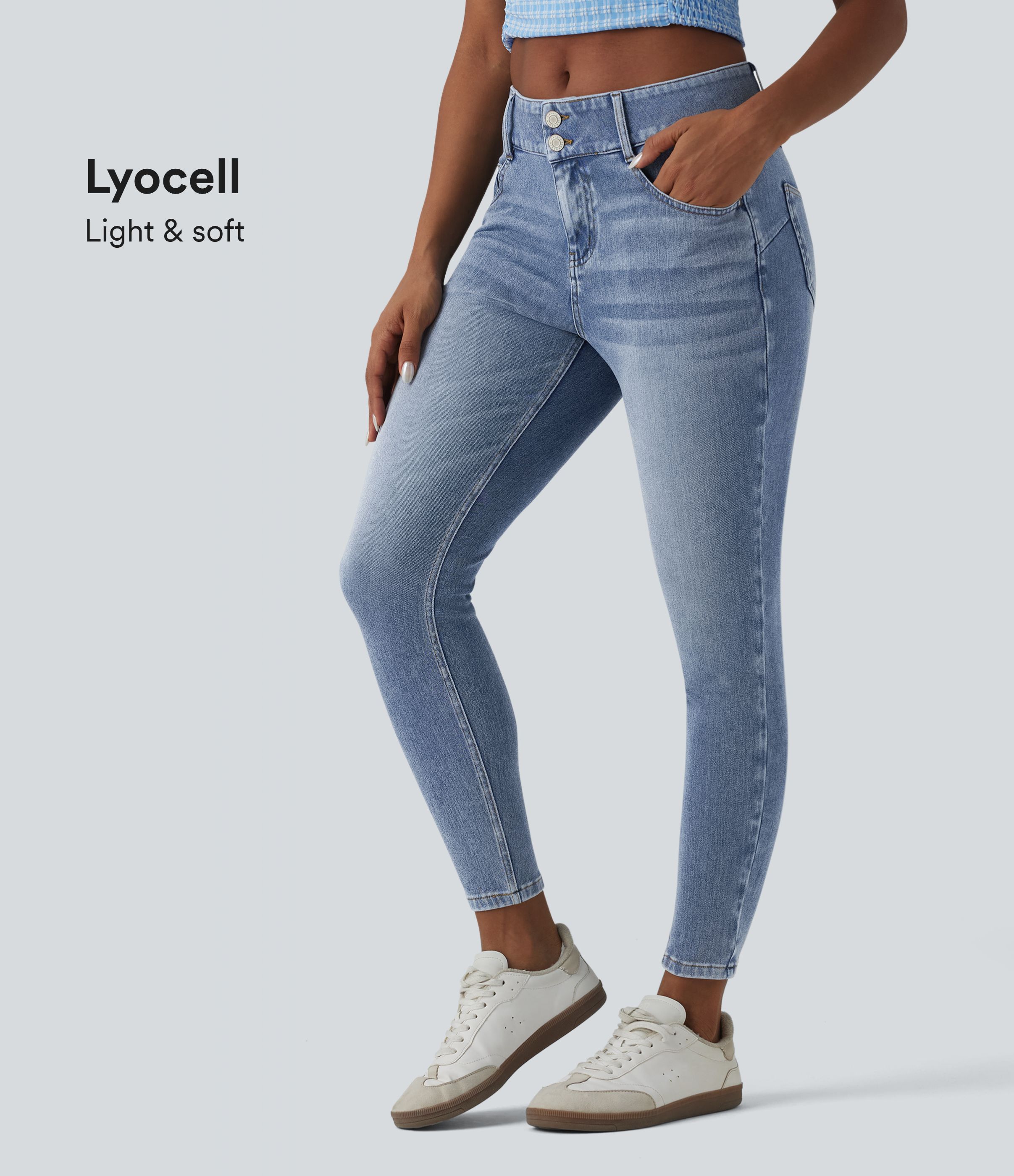 Halara Flex™ Mid Rise Draped Lyocell Washed Skinny Casual Jeans with Pockets