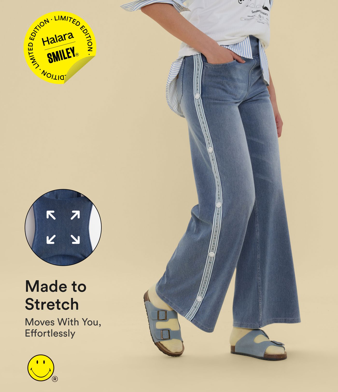 Halara X Smiley Halara Flex™ High Waisted Baggy Wide Leg Washed Casual Jeans with Pockets