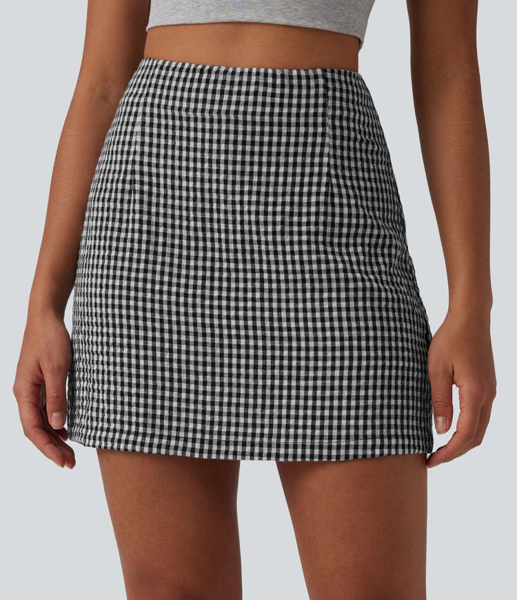 High Waisted 2-in-1 A Line Plaid Mini Casual Linen-Feel Skirt