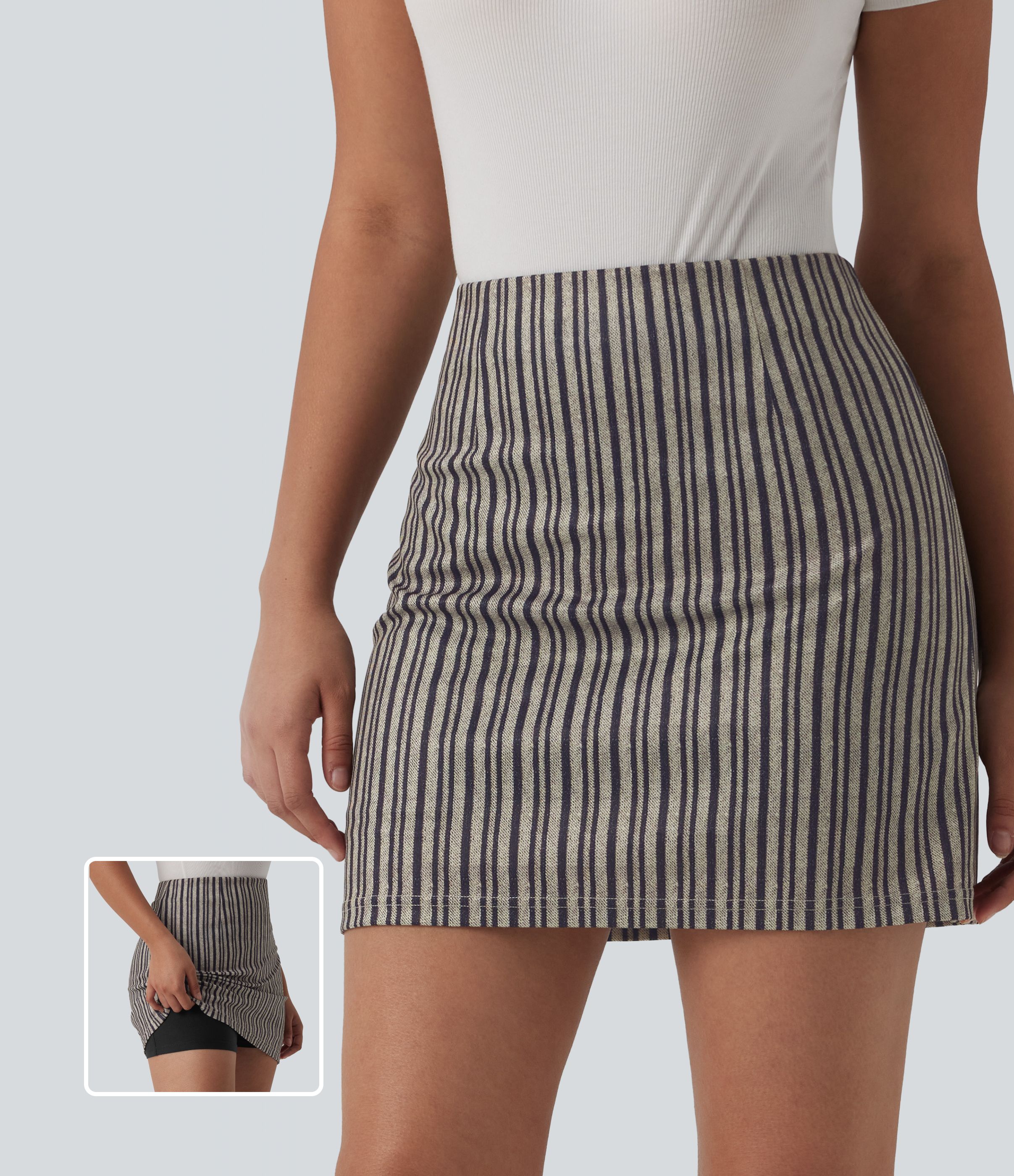 High Waisted 2-in-1 Stripes Work Bodycon Mini Skirt