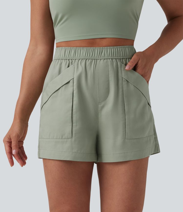 High Waisted Casual Linen Baggy Shorts with Pockets