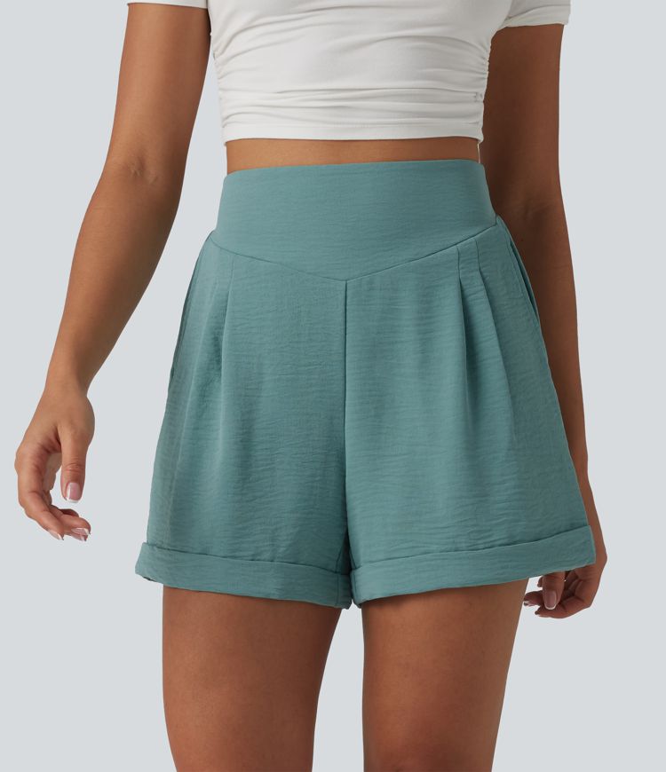 High Waisted Casual Linen-Feel Shorts 4'' with Pockets