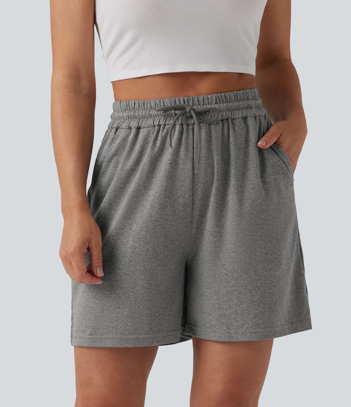High Waisted Drawstring Casual Baggy Shorts 5'' with Pockets