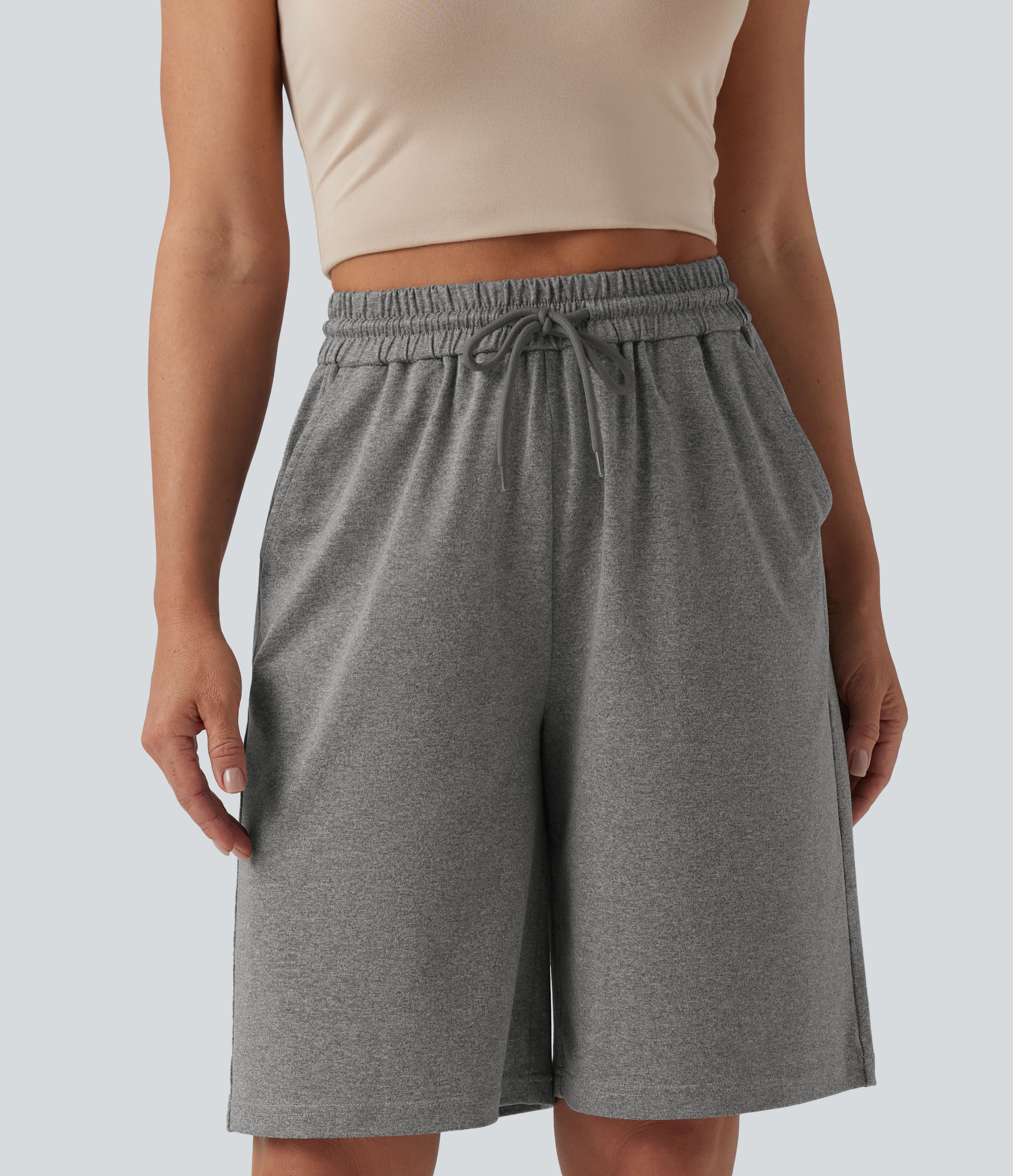 High Waisted Drawstring Casual Bermuda Shorts 9.5'' with Pockets