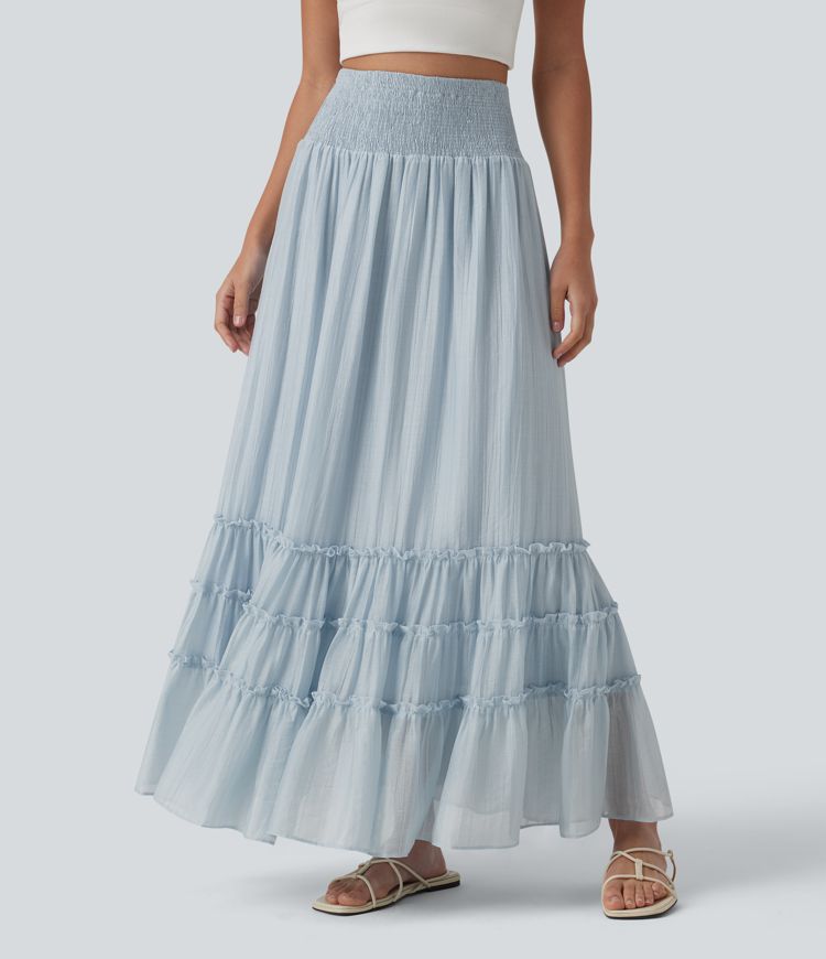 High Waisted Flowy Tiered Maxi Resort Skirt