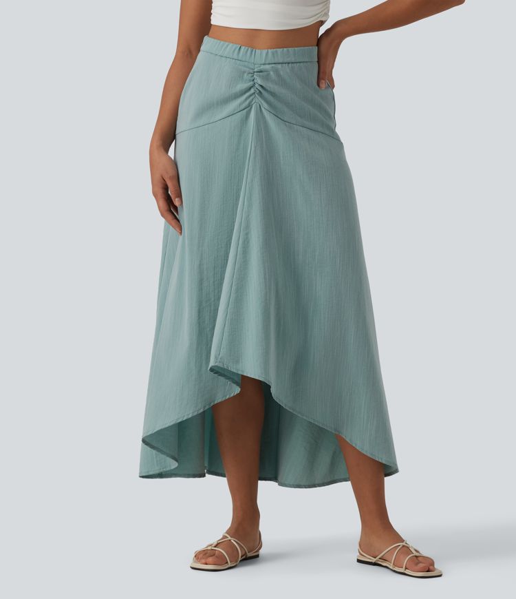 High Waisted High Low Maxi Casual Linen-Feel Skirt