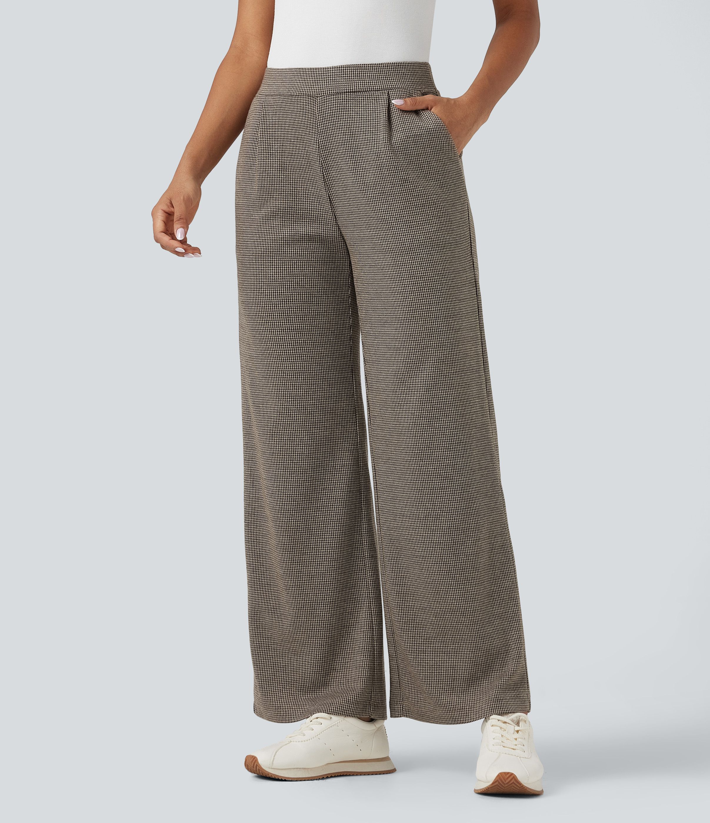 Halara Flex™ High-waisted Houndstooth Work Wide-leg Trousers with Pockets
