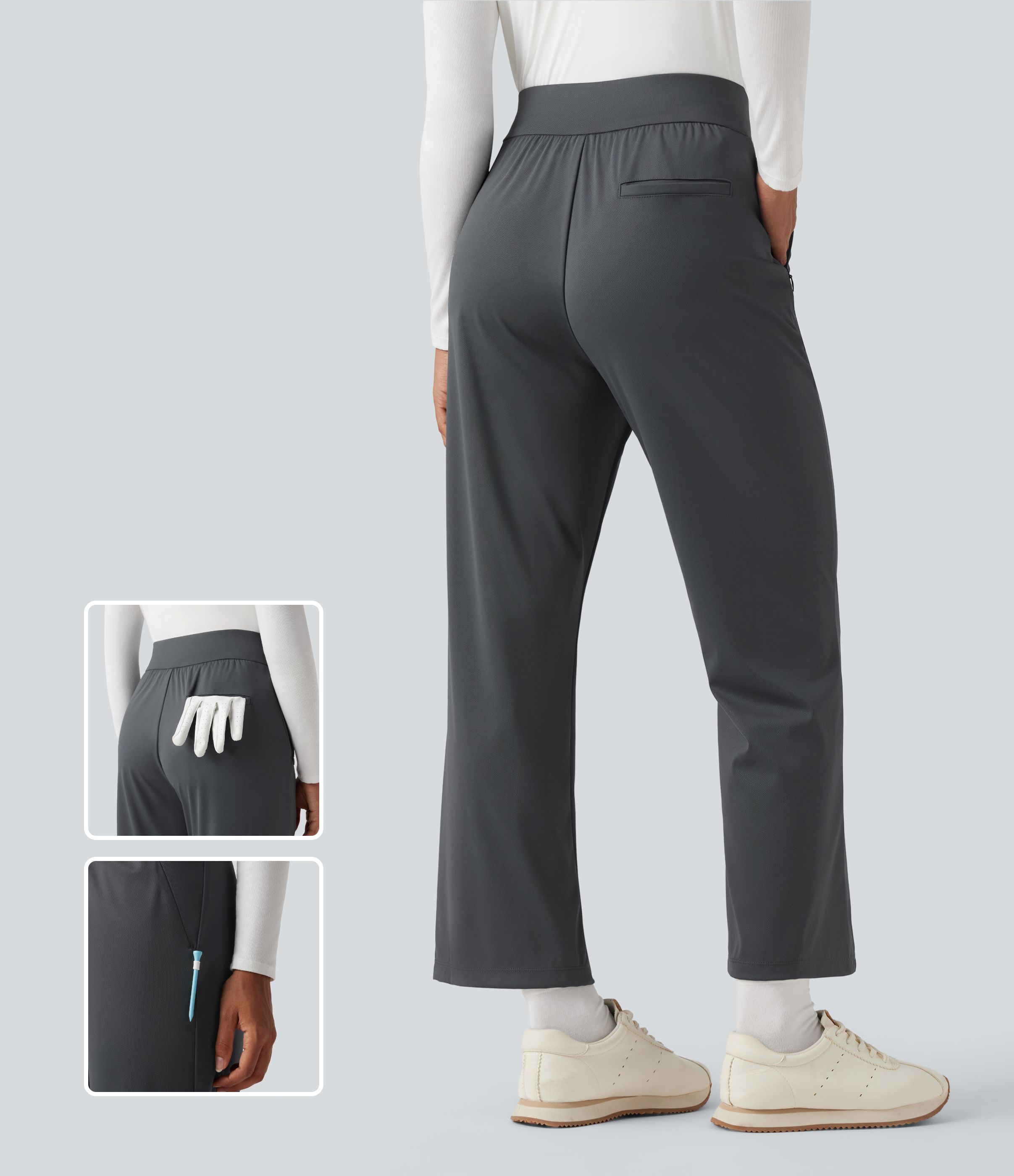 High Waisted Straight Leg Golf Trousers with Pockets-Golf Tee