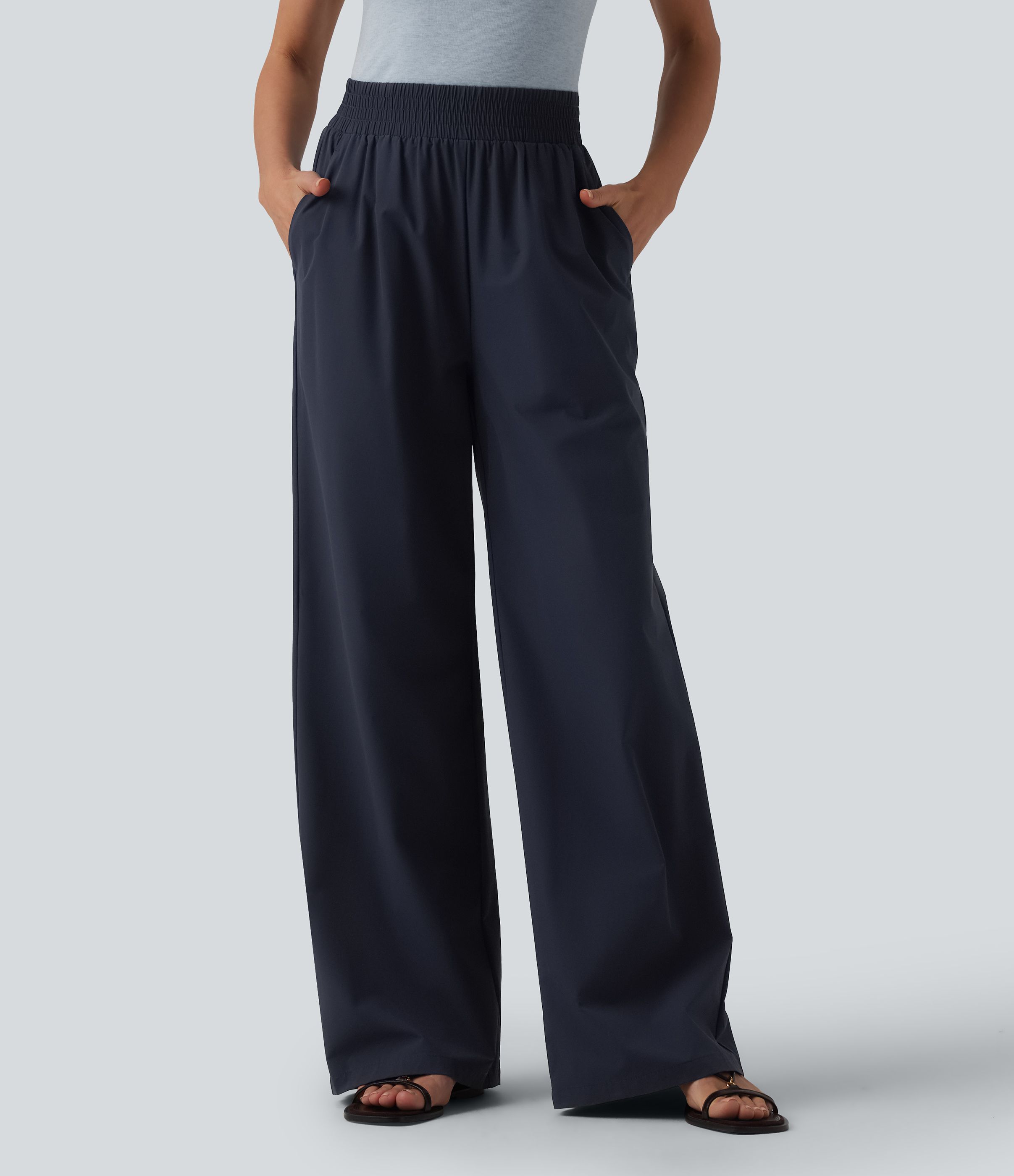 High Waisted Wide Leg Casual Trousers with Pockets