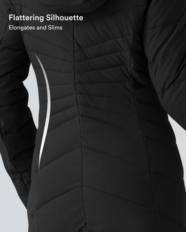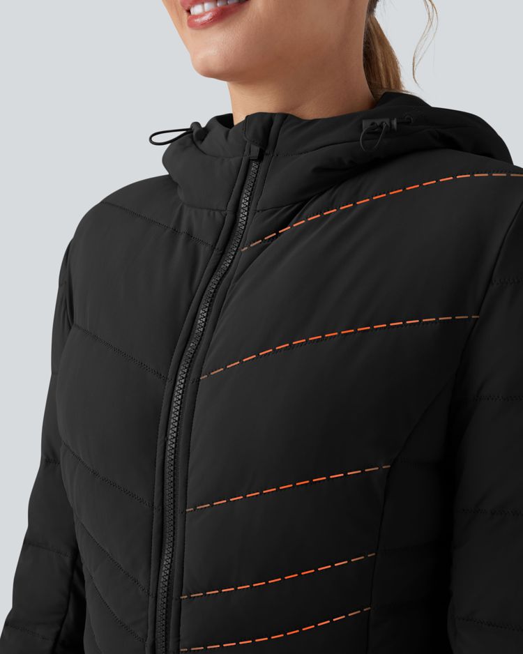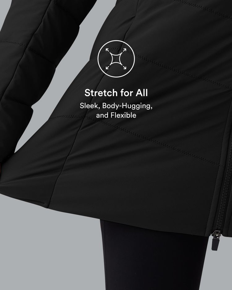 PuffFlex Hooded Longline Stretchy Casual Quilted Jacket with Pockets