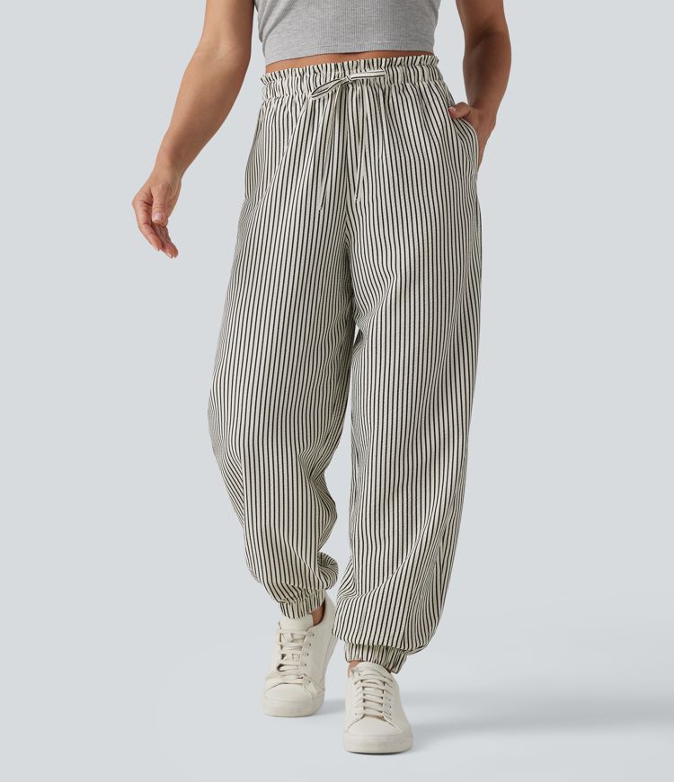 Lettuce Trim High Waisted Drawstring Stripes Casual Joggers with Pockets