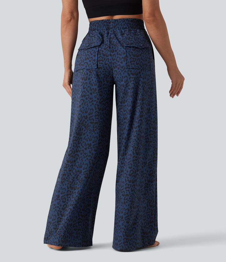 Mid Rise Leopard Print Dance Trousers with Pockets