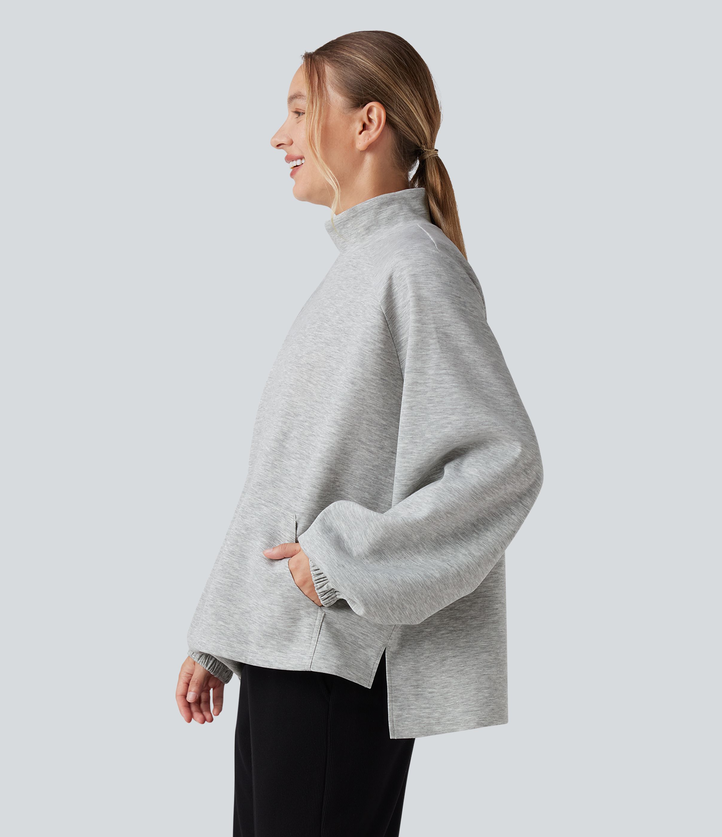 Mock Neck Long Sleeve High Low Casual Sweatshirt with Pocket