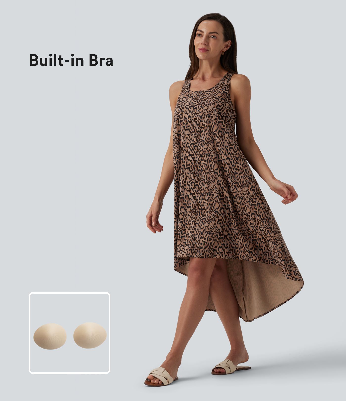 Racerback Sleeveless High Low Leopard Print Flowy Midi Resort Dress with Pockets