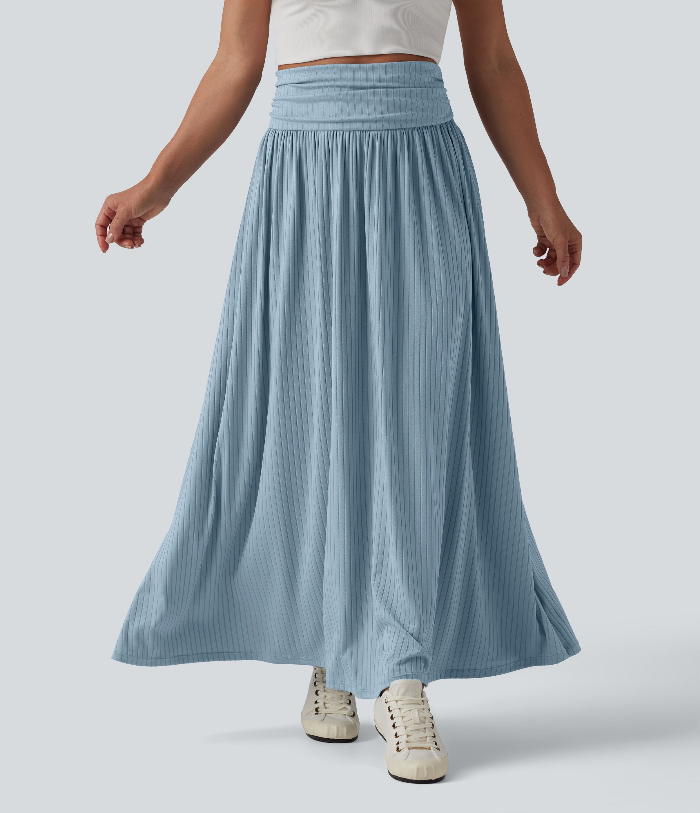 Ribbed Knit High Waisted Flowy Maxi Casual Skirt