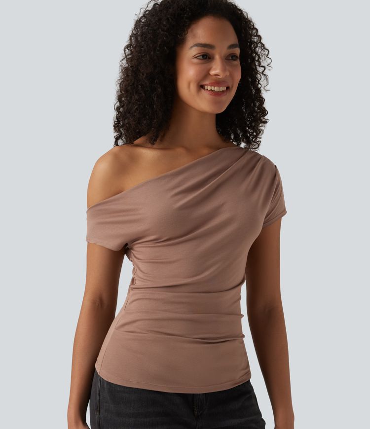 Ribbed One Shoulder Short Sleeve Casual Top