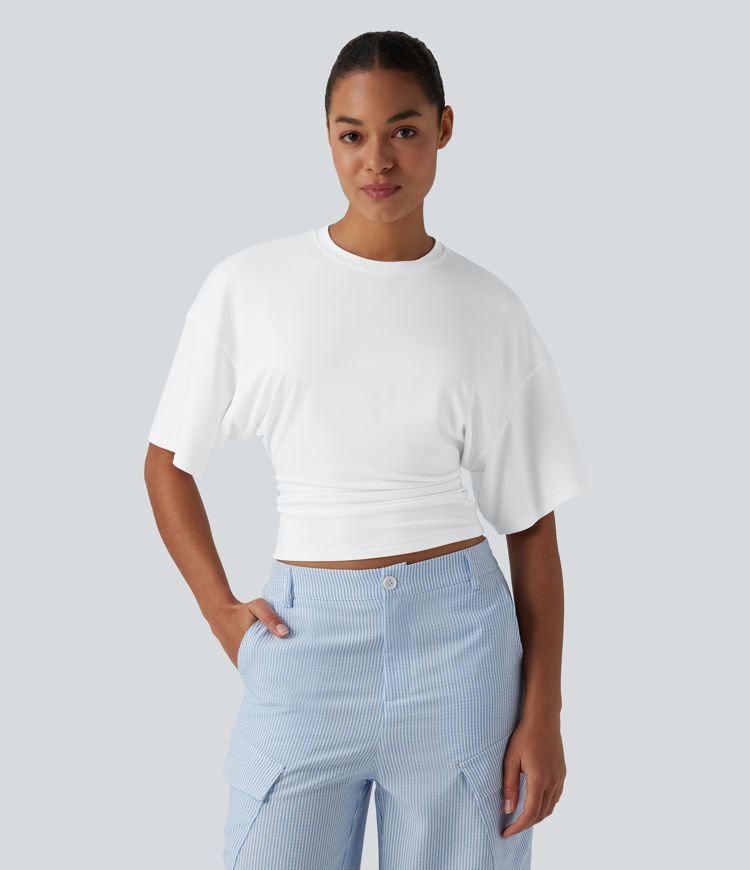 Round Neck Half Sleeve Ruched Casual T-Shirt