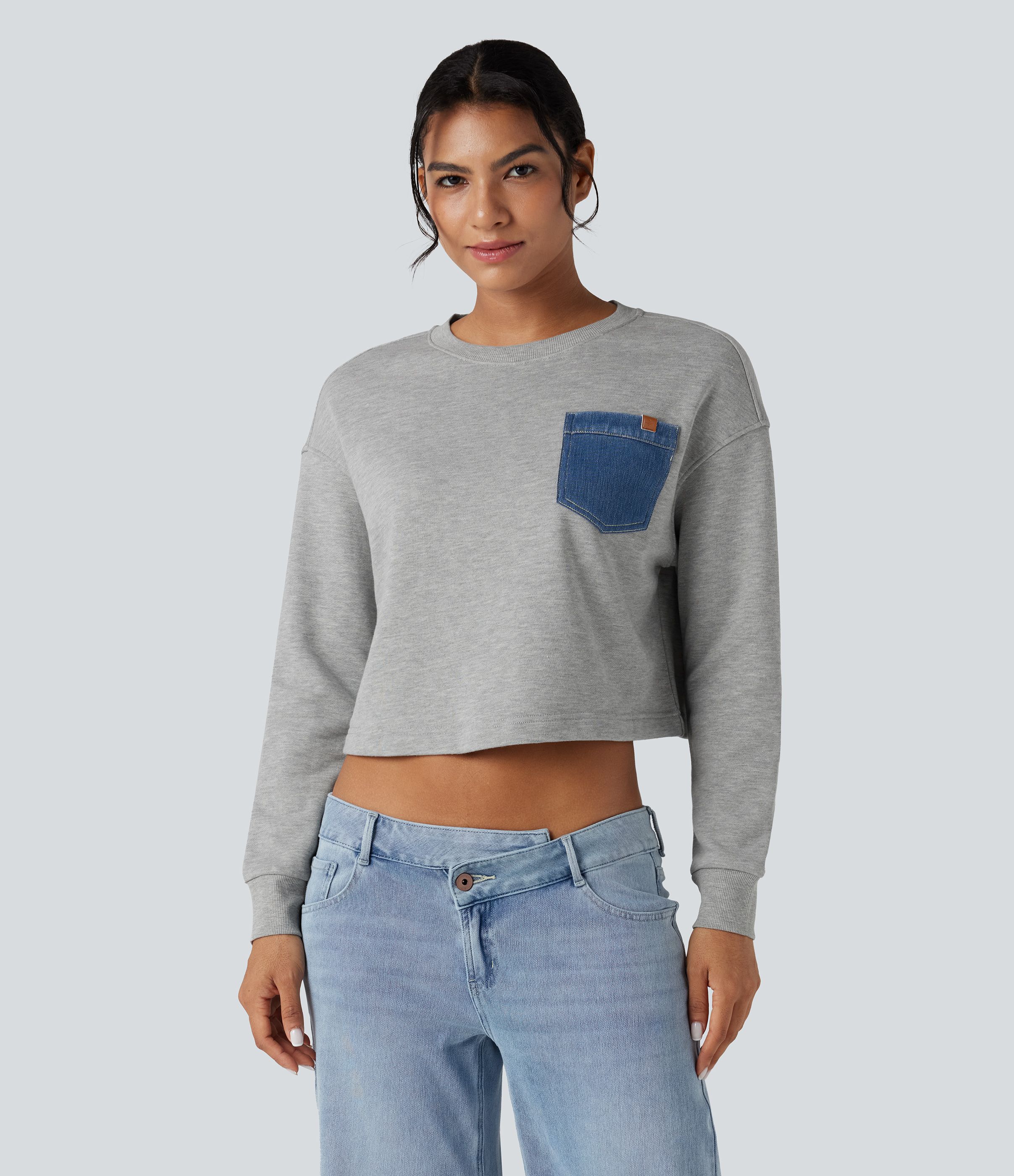 Lässiges Baumwoll-Sweatshirt mit Rundhalsausschnitt, langen Ärmeln und Tasche