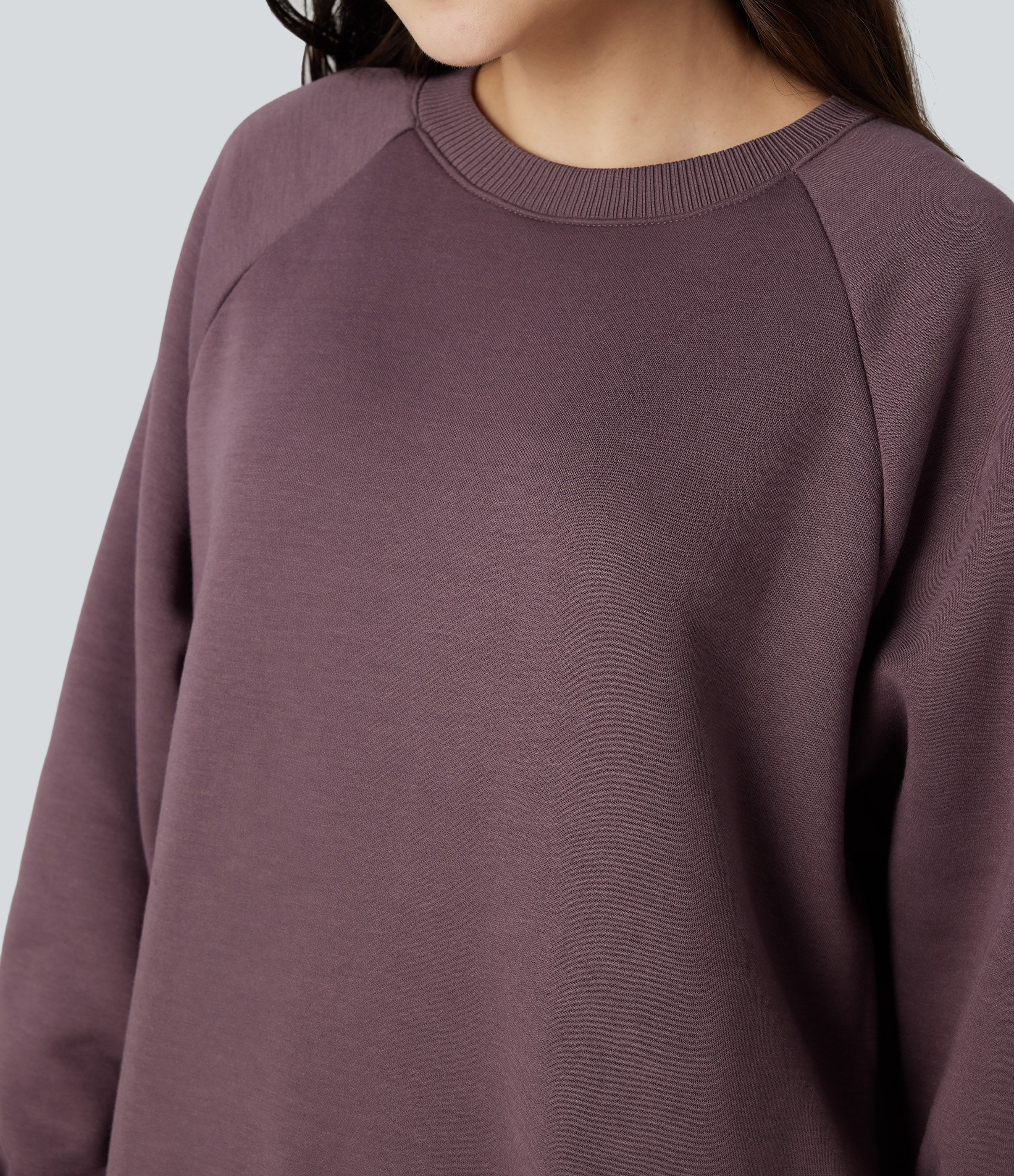 Round Neck Long Sleeve Oversized Fleece Casual Sweatshirt with Pockets