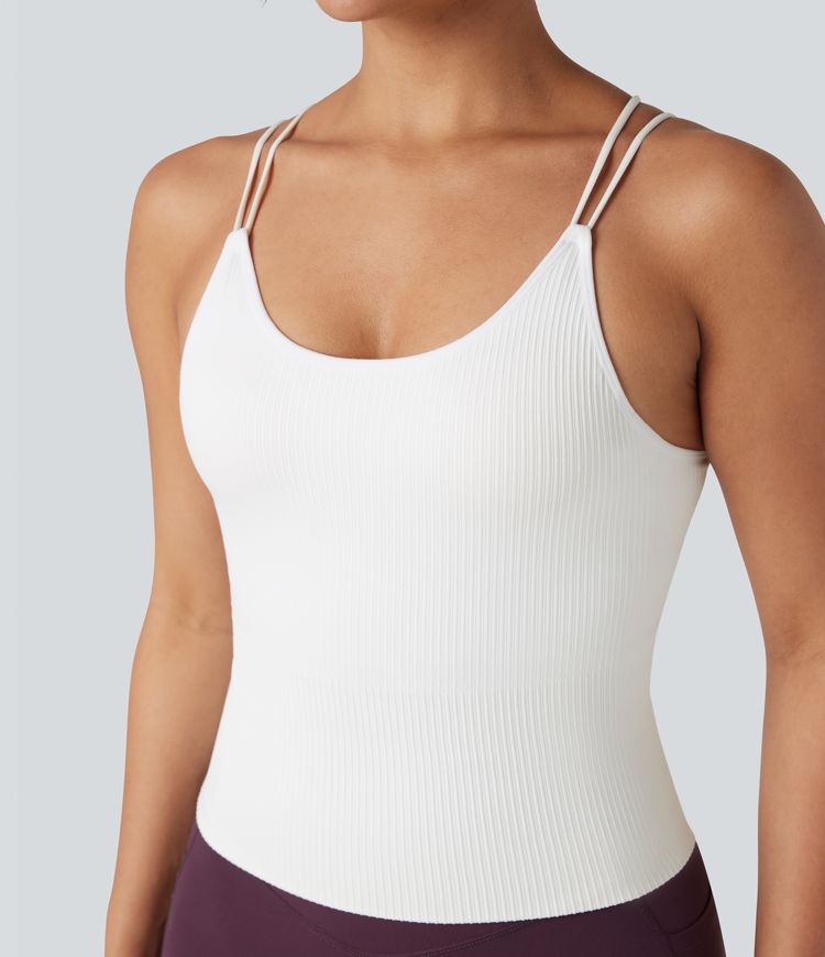 OneForm Seamless Flow U-Neck Double Straps Built-in Bra Running Cami-Longer Length