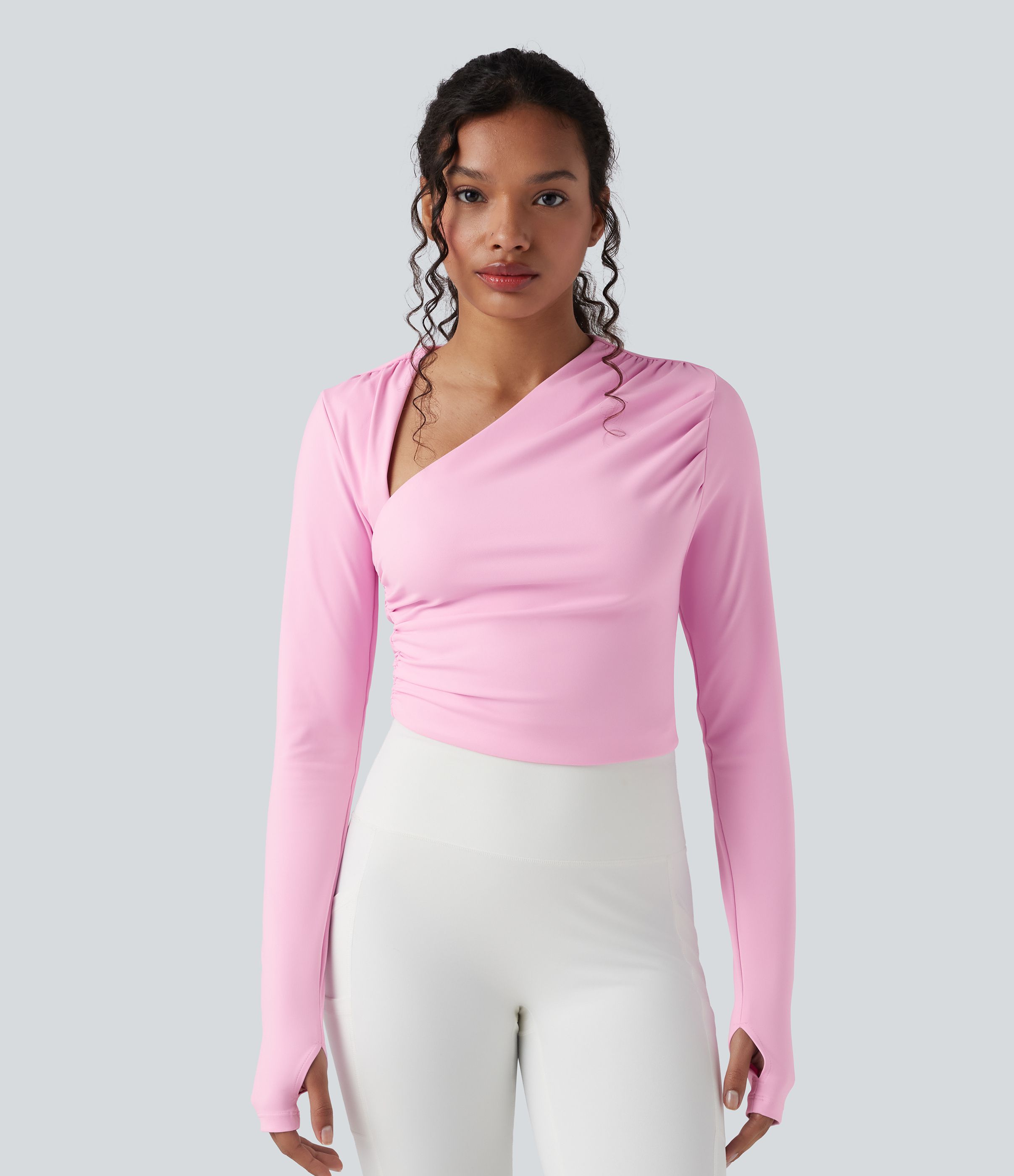 SoftlyZero™ Airy Asymmetric Neck Long Sleeve Thumb Hole Cool Touch Yoga Sports Top