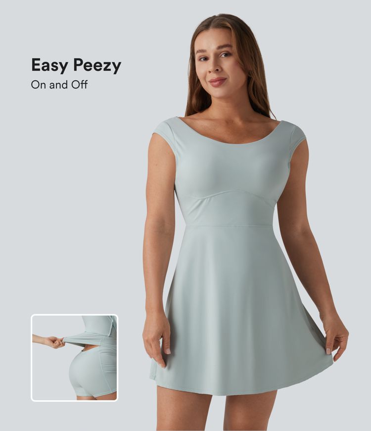 SoftlyZero™ Airy Boat Neck Backless Mini 2-in-1 Cool Touch Dance Active Dress with Pockets-Easy Peezy-UPF50+