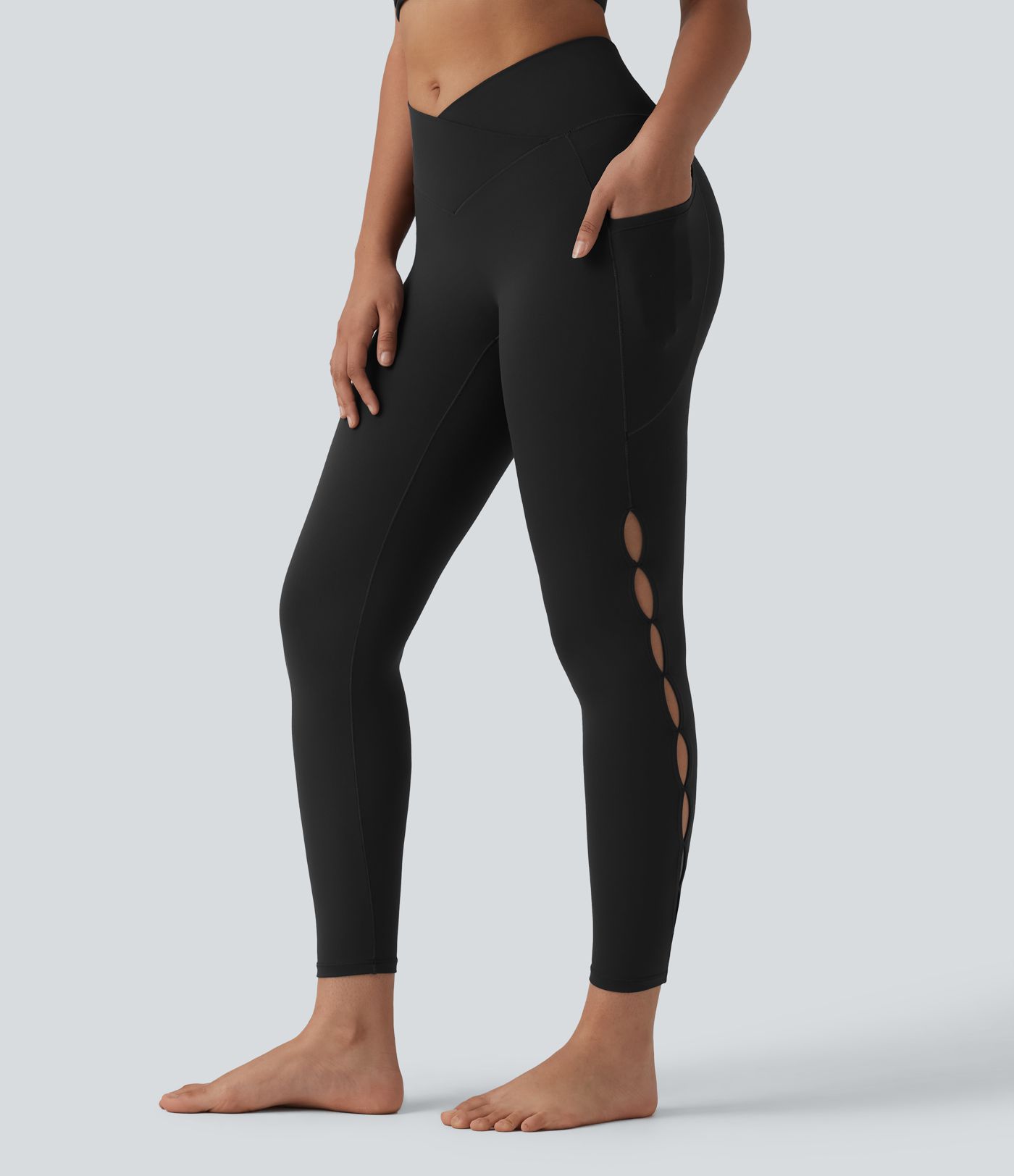 SoftlyZero™ Crossover High Waisted Cut-out Yoga 7/8 Leggings with Pockets-UPF50+