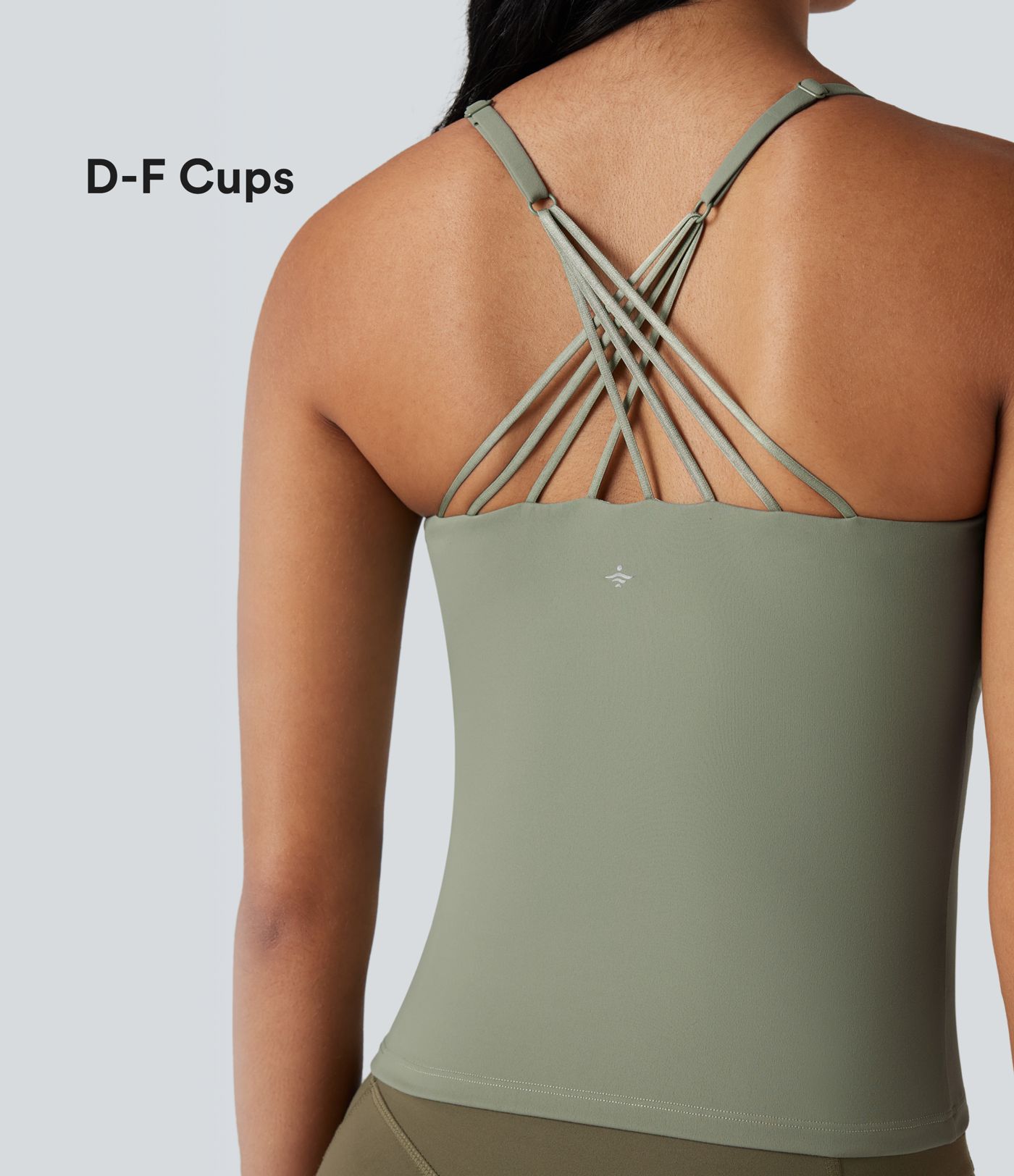 SoftlyZero™ débardeur de yoga en peluche à encolure en U, dos croisé et dos nu — pour bonnets D–F