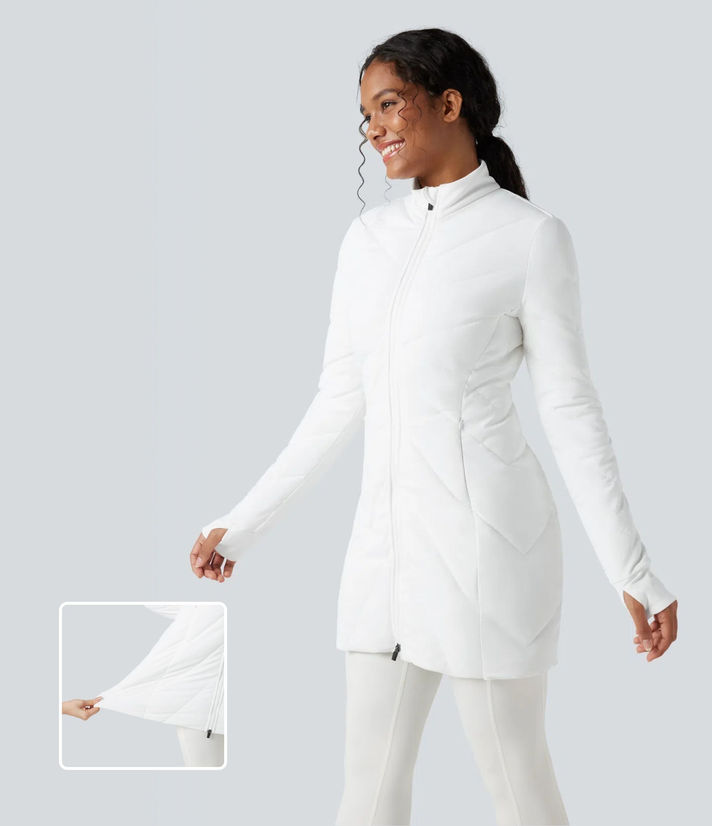 Stand Collar Double Zipper Thumb Holes Casual Padded Jacket with Pockets